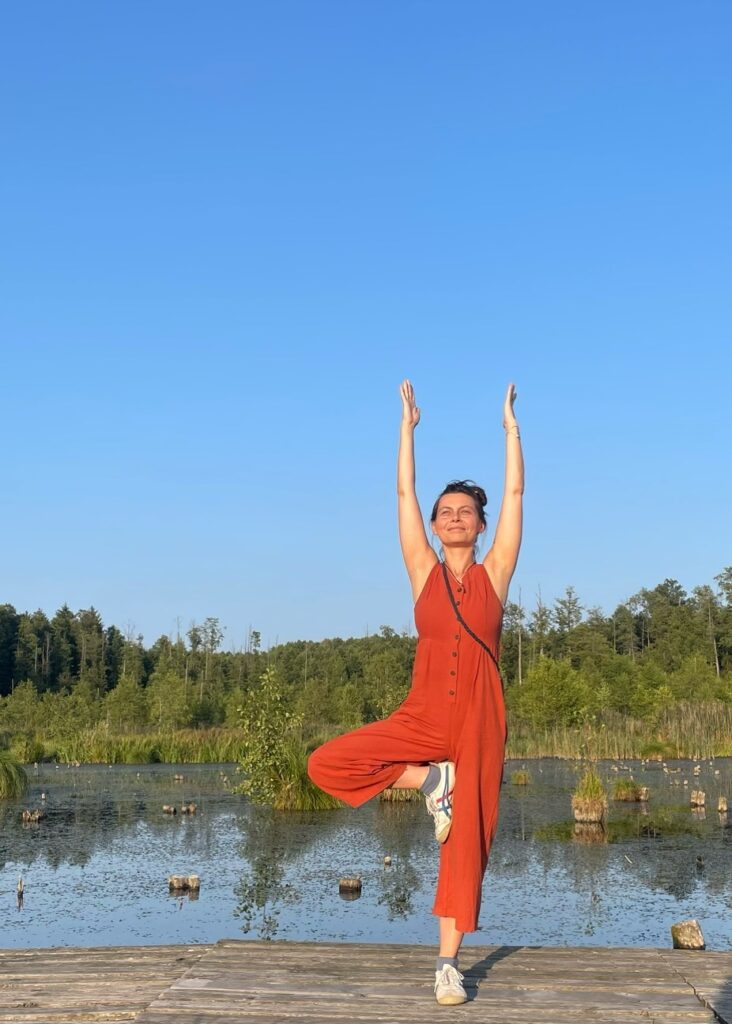 Jestem nauczycielką jogi w tradycji vinyasa jogi (RYT200), przez wiele lat praktykowałam w metodzie Iyengara. W swojej praktyce wyciągam i łączę z obu metod to co dla mnie okazało się najważniejsze: ruch, płynność i oddech z dokładnością i uważnością. Praktyka jogi to dla mnie przestrzeń na głęboki kontakt z ciałem i tym co je wypełnia, to eksplorowanie siebie poprzez ruch, oddech i wytrwałość. To proces wracania do siebie, regeneracji, odnajdywania harmonii i siły, wielowymiarowości “ja” i relacji do tego co poza mną. To praktyka życia. Prowadzę medytacyjne i relaksacyjne spacery leśne. Jestem przewodniczką po Mazowieckim Parku Krajobrazowym. Jestem kuratorką sztuki i animatorką kultury. Prowadzę zajęcia jogi na warszawskiej Pradze.